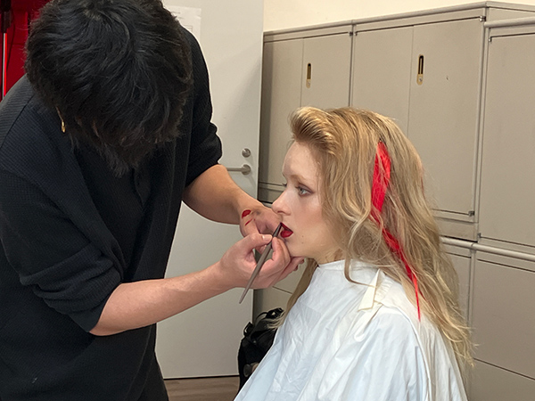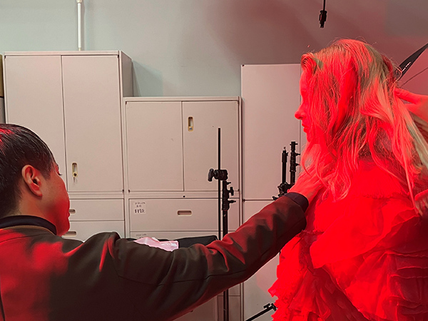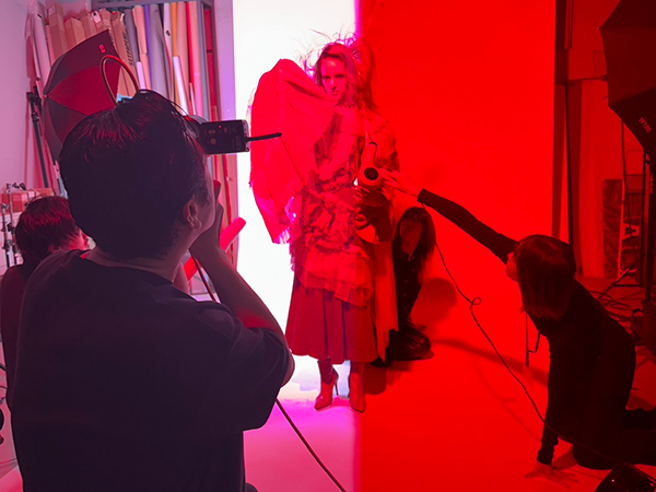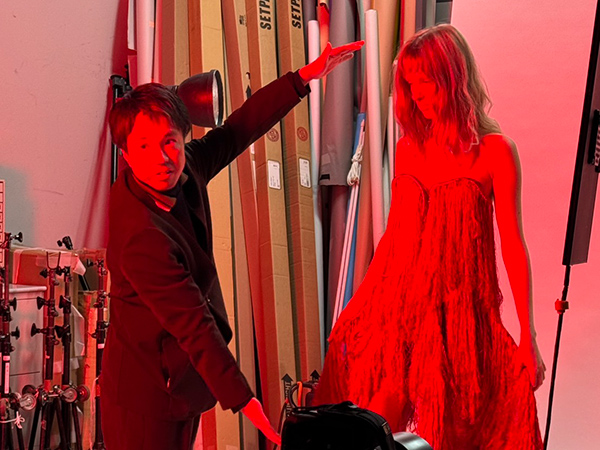 Elegant Red背景を白にセットすることでヘアの動きをリアルに表現。フロントから赤ライトを照らし、品がありながらエッジさも感じる作品に仕上げました。