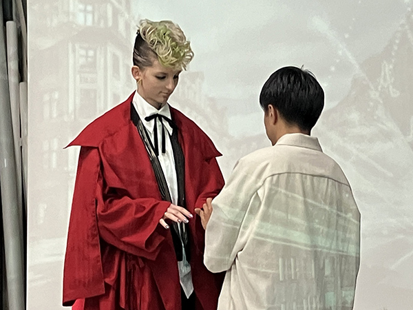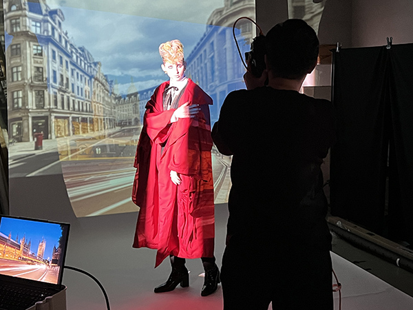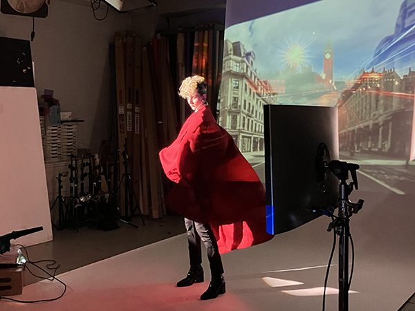 Regent Street quiff「リージェント・ストリート」にインスパイアされた背景に曲線的な光を演出しました。