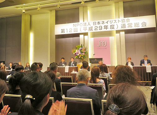 NPO法人 日本ネイリスト協会(JNA/瀧川晃一理事長)は、2017年6月21日(水)、ザ・キャピトルホテル東急(東京都・千代田区)において、「第12回 通常総会」を開催した。総会冒頭で瀧川晃一理事長は、「日本のネイル技術は世界で最も高く、注目を集めています。海外から自国での試験開催希望がきておりましたが、今年9月台湾で、10月に韓国で試験を予定しています」と発表。これは、昨年から始動していた「国際ネイリスト検定」が具体化したもので、試験は3級から開始し中国を含む地域拡大も視野に進めているという。総会では、第1号議案から第6号議案まで審議事項はすべて承認された。また、役員改選の年にあたり、全役員のうち、「会長」が新設され仲宗根幸子副理事長が、「常務理事」も新設され木村俊弥事務局長が選任された。「会長制」は、日本のネイル技術の更なる向上を担って創設されたもので、技術者のリーダーとして活躍する。また、仲宗根副理事長が務めていた教育委員長には小笠原弥生氏が選任された。その他は再任となった。総会後、懇親会が行われ新理事が紹介されるとともに、瀧川理事長が旭日小綬章を受章したことが伝えられ、受章にあたって瀧川理事長から会員へ感謝の意が述べられた。今期の主なイベントスケジュールは下記のとおり。