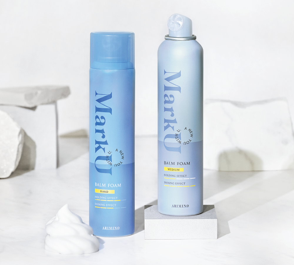 (株)アリミノ(田尾大介代表取締役社長)は、2026年1月20日(火)、メンズスタイリングブランド『Mark U(マークユー)』シリーズから、アリミノ独自開発の新剤型「バームフォーム」を採用した新製品『マークユー バームフォーム ハード』および『マークユー バームフォーム ミディアム』を追加発売する。『Mark U』シリーズは、ヘアスタイリングだけに留まらず、眉毛もスタイリングするという発想で、男性が美容にチャレンジするための第一歩をつくるブランド。「印象スタイリング」を目指し、髪から顔の印象までをスタイリングすることで、メンズの新しいトータルビューティを提案している。近年、ツイストスパイラルや波巻き、フェザーパーマなど、メンズパーマスタイルの細分化が進み、少しずつ増加するパーマ需要と相まってフォームの人気が高まりつつある。一方、同社にはサロンを利用するお客様から「ワックスでは重くてパーマがダレる」「フォームは乾くとパサつく」など、サロンでの仕上がりの再現が難しいという声が多く寄せられていた。同社は、これらの課題に応えるべく、泡状フォームの操作性と、バーム特有のツヤと保湿力を融合させる新剤型「バームフォーム」を開発。これまでのフォームでは難しかった軽さとツヤの両立を目指した。