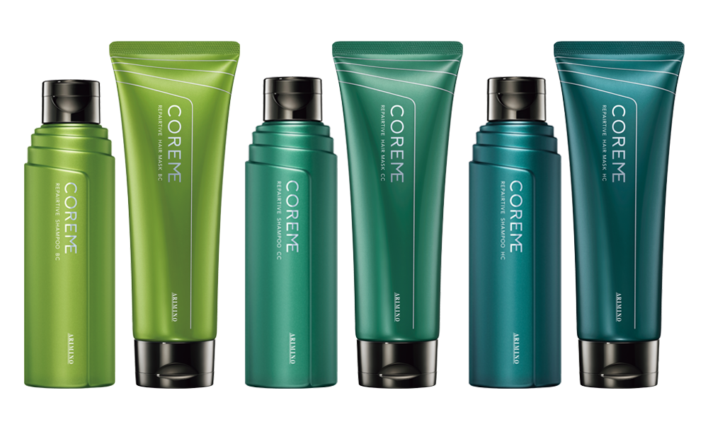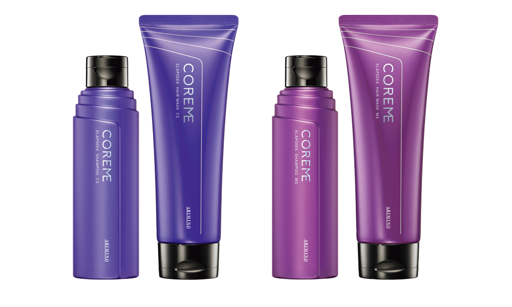 年齢を重ねた髪は、ダメージを受けているのではなく、毛髪内部のコルテックスに存在するα-へリックス(螺旋構造)が乱れた状態で生えてくることが分かっている。これによりパサつきやうねりなど“傷んだように見える状態”が生じる。「コアミー」では、毛髪構造に働きかける独自成分「ヘリックスショット*2」を採用。従来の良さはそのままに、厳選成分を追加してパワーアップ。乱れた構造にアプローチし、芯からまとまりのある髪へ導く。